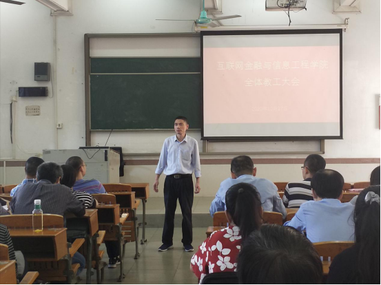 10月27日,Ky官网在7栋教学楼101课室召开全体教工大会暨工会会员大会,院党总支书记朱小焱、院长吴炎太教授、副院长钟雪灵、副院长潘章明、副书记丘志君出席了会议,全院教工参加了会议。