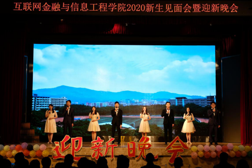 2020年12月10日,互联网金融与信息工程学院2020年新生见面会暨迎新晚会在大礼堂隆重举行,院党总支书记朱小焱、院长吴炎太教授、副院长钟雪灵教授、院党总支副书记丘志君、学生处科长孙海慧等出席了活动,全体辅导员及2020级班主任、新生代表500多人参加了活动。