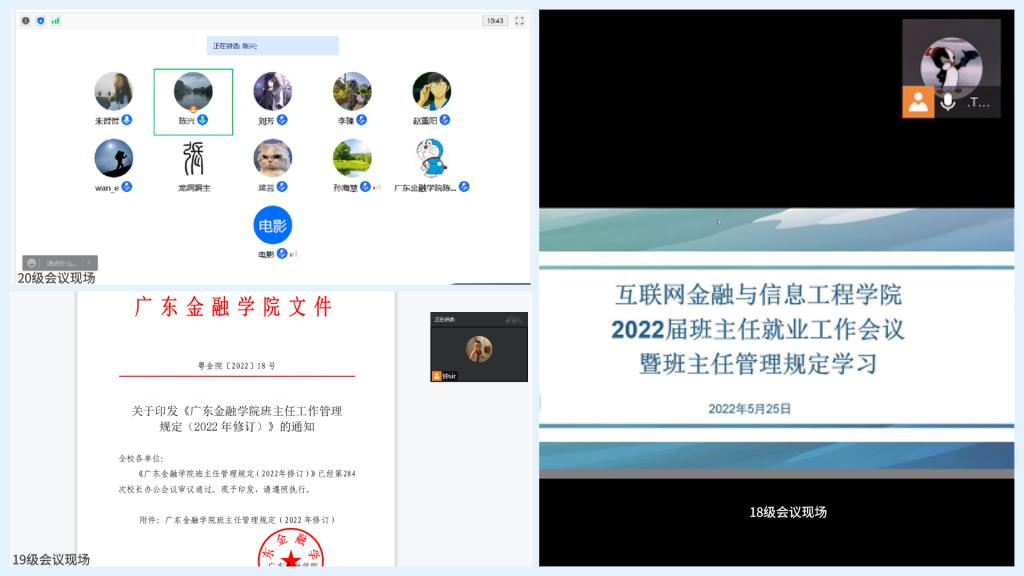 2022年5月25日,Ky官网在腾讯会议平台分年级组织班主任专题学习学校新修订的《班主任工作管理规定》,校本部各年级辅导员、班主任参加了本次学习会,会议分别由各年级级长冯晓骏老师、钟培权老师、陈兴老师主持。