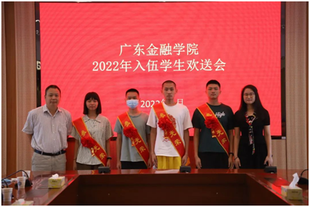 9月5日,我校2022年入伍学生欢送会在行政楼4楼会议室举行。副校长王醒男、党委武装部部长陈伟业、党委学生工作部部长容志豪、相关学院党总支书记、辅导员参加会议。
