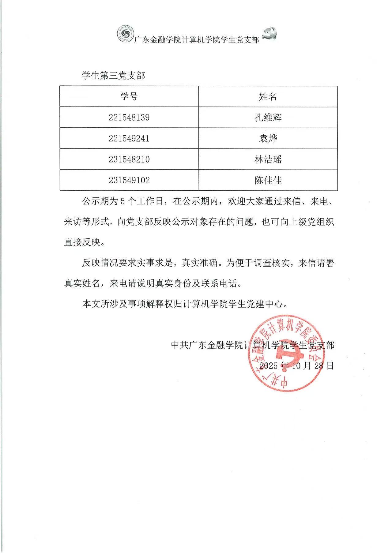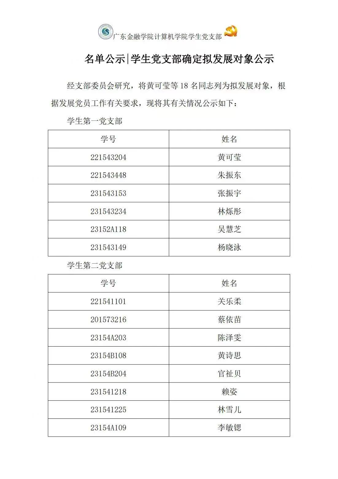 公示 | Ky开元集团Ky开元集团学生党支部确定拟发展对象公示