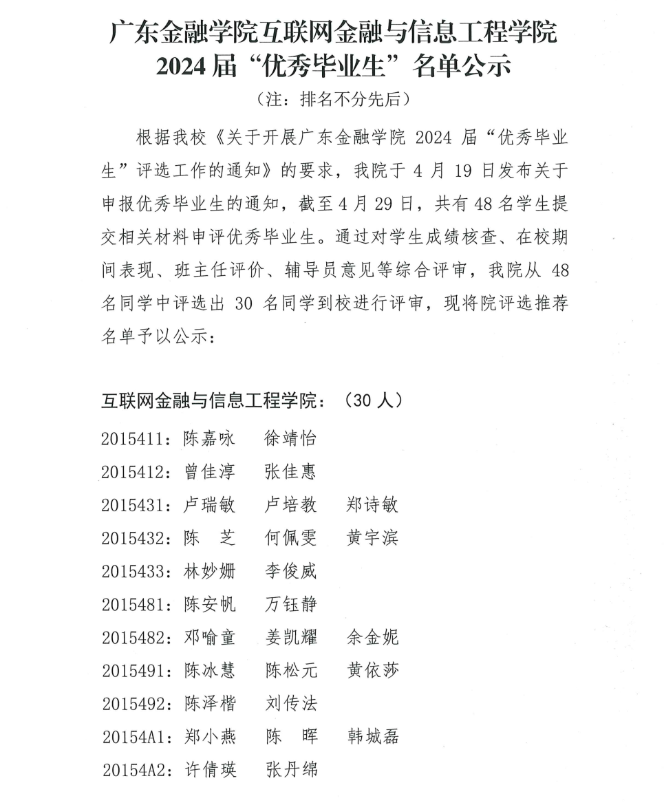 Ky开元集团互联网金融与信息工程学院2024届“优秀毕业生”名单公示