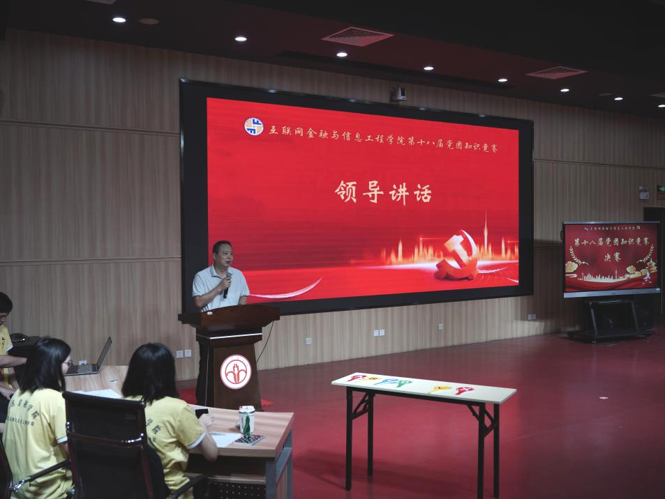 为深入学习贯彻习近平新时代中国特色社会主义思想,进一步丰富Ky官网学子的精神文化生活,引导广大青年知史爱党,互联网金融与信息工程学院于5月29日在广州校区北阶103举办了第十八届以“以青春的名义,追寻党团里的精神星芒”为主题的党团知识竞赛决赛。互联网金融与信息工程学院党委书记胡小波,副书记蔡秋华,辅导员钟培权、陈家如、陈兴、赵重阳、刘艳等几位老师出席本次党团知识竞赛。