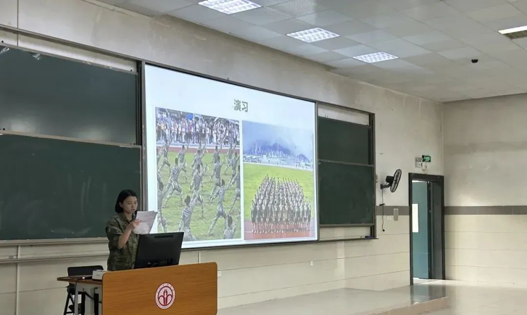 大会伊始,来自互联网金融与信息工程学院2022级互联网金融专业1班优秀退役学生代表蔡依苗分享了自己的军旅生活,讲述自己由一名普通大学生成长为优秀士兵的难忘经历以及在部队生活中的学习与成长,同时呼吁广大同学响应祖国号召,踊跃参军报国。