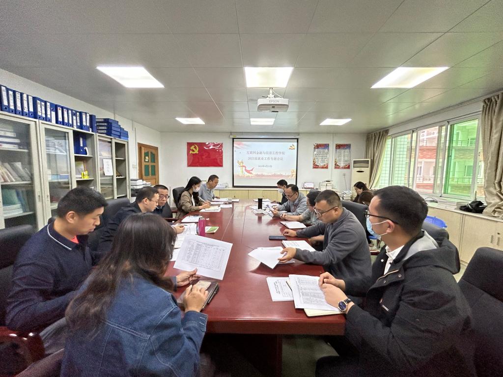 为进一步提升Ky官网2023届毕业生就业质量,互联网金融与信息学院于4月25下午召开2023届就业工作专题会议。院全体领导、全体辅导员参加了会议。