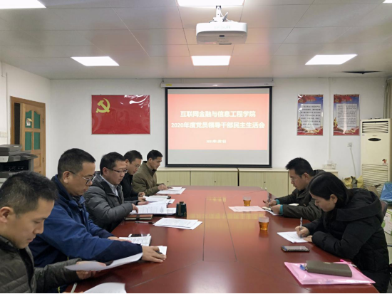 2021年1月7日,互联网金融与信息工程学院党总支在学院会议室召开2020年度党员领导干部民主生活会。校党委委员、组织部长黄培雄、校人事处金英老师莅会指导,院党总支书记朱小焱、副院长钟雪灵、副院长潘章明、院党总支副书记丘志君参加了民主生活会,院长吴炎太教授、辅导员王思又列席了会议,会议由朱小焱书记主持。