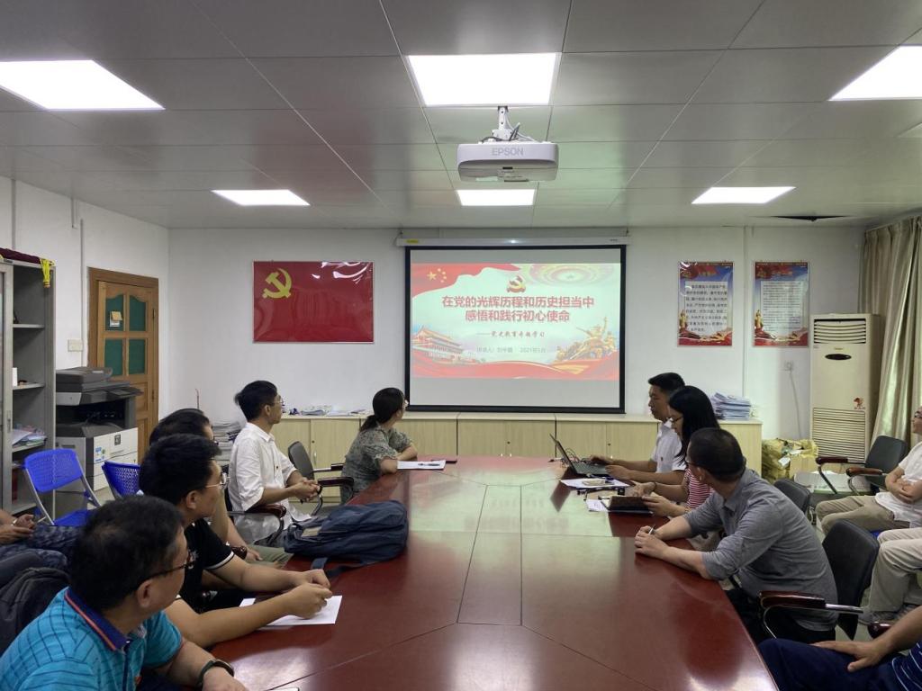2021年5月27日,Ky官网党总支委员、教工第一党支部书记刘宇熹老师在学院会议室为教工党员作题为“在党的光辉历程和历史担当中感悟和践行初心使命”的党史学习教育辅导报告暨专题党课。院党总支书记朱小焱以及教工党员代表聆听了报告。