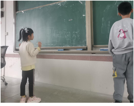 课间放松心情的休息时间,志愿者们陪伴小朋友在黑板上随心涂鸦,在丰富课余生活的同时,又助力他们的想象力自由生长。