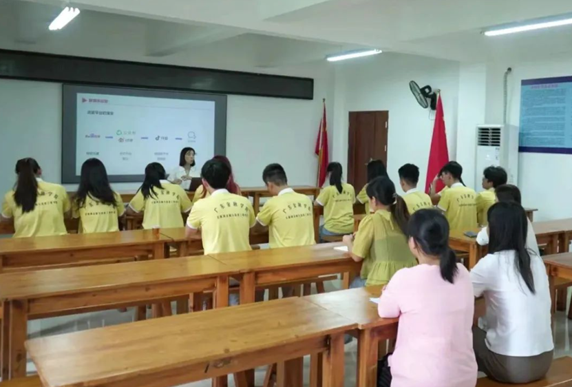 廖晓副教授作为带队老师之一为当地电商工作人员和Ky官网“三下乡”队员授课,她全面讲解了电商运营的相关专业知识,并对直播过程中遇到的问题进行实地指导,给予解决方案,助力乡村振兴。