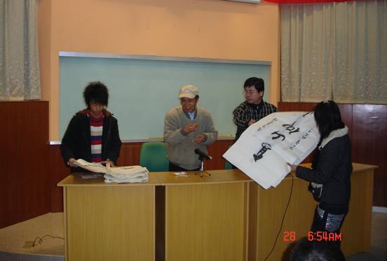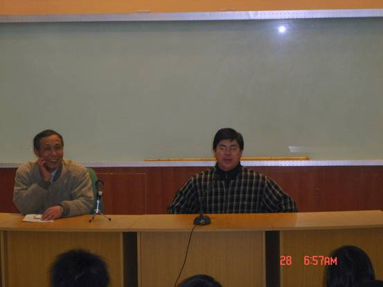 11月28日晚7点, “好学月”励志字幅赠送仪式暨院系学习部、07级新生班级学习委员会议在4号教学楼101教室隆重举行,教务长徐新民教授、学务长谭玉成出席了此次会议并发表讲话。