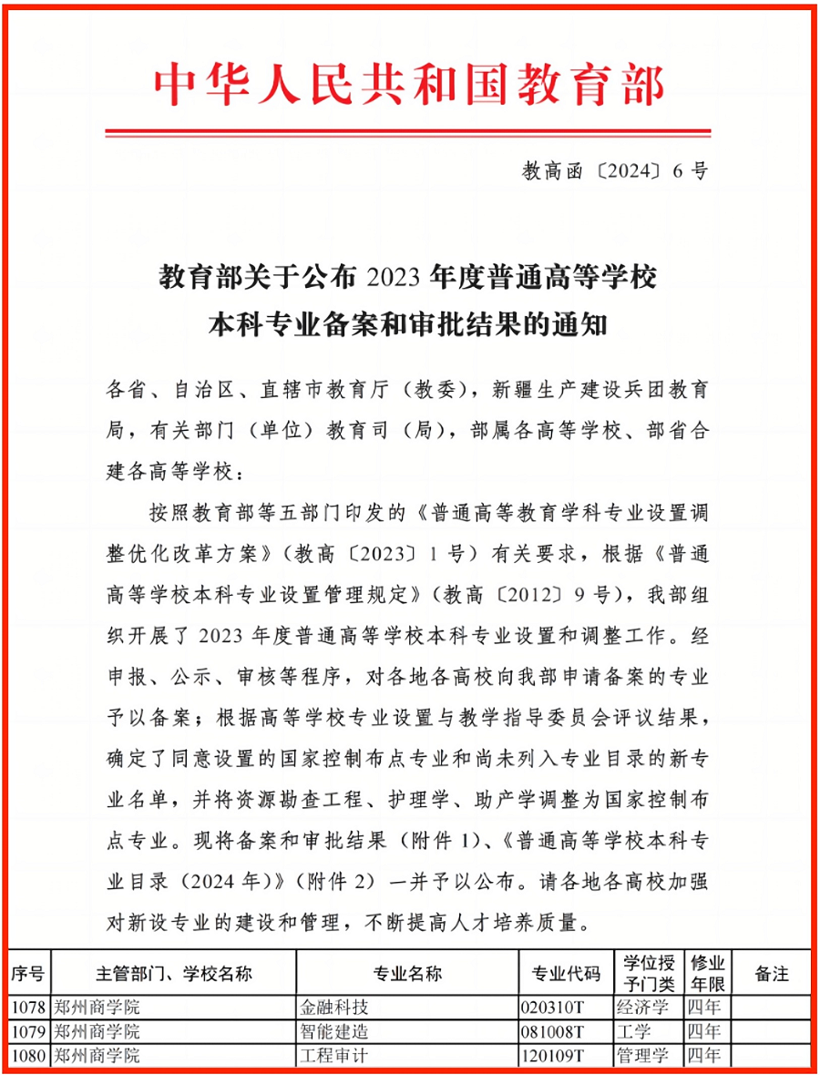 近日,教育部公布了2023年度普通高等学校本科专业备案和审批结果,永利官网申报的金融科技、智能建造、工程审计3个本科专业成功获批。
