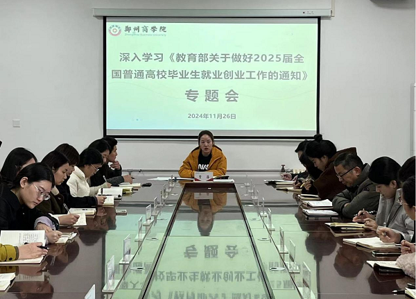 为积极响应并深入贯彻《教育部关于做好2025届全国普通高校毕业生就业创业工作的通知》(教就业〔2024〕5号)文件精神,文传学院于11月26日召开了2025届毕业生就业创业工作专题学习会议,学院党委书记贾蓓、团委书记王凯及全体辅导员参会。此次会议旨在明确目标、强化责任、细化措施,全力做好学院2025届毕业生的就业创业工作。