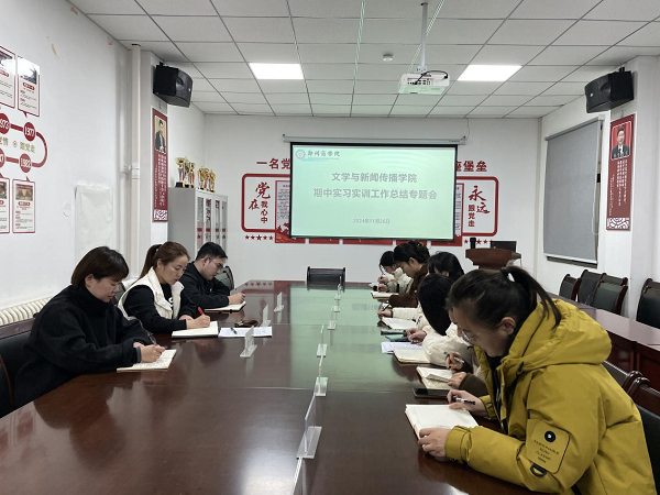 2024年11月26日,为了进一步推进2025届毕业生的实习工作,提高实习实训管理工作的规范性,文传学院在自力楼101会议室成功召开了期中实习实训工作总结专题会。学院党委书记贾蓓、团委书记王凯以及各毕业班辅导员参加了此次会议。