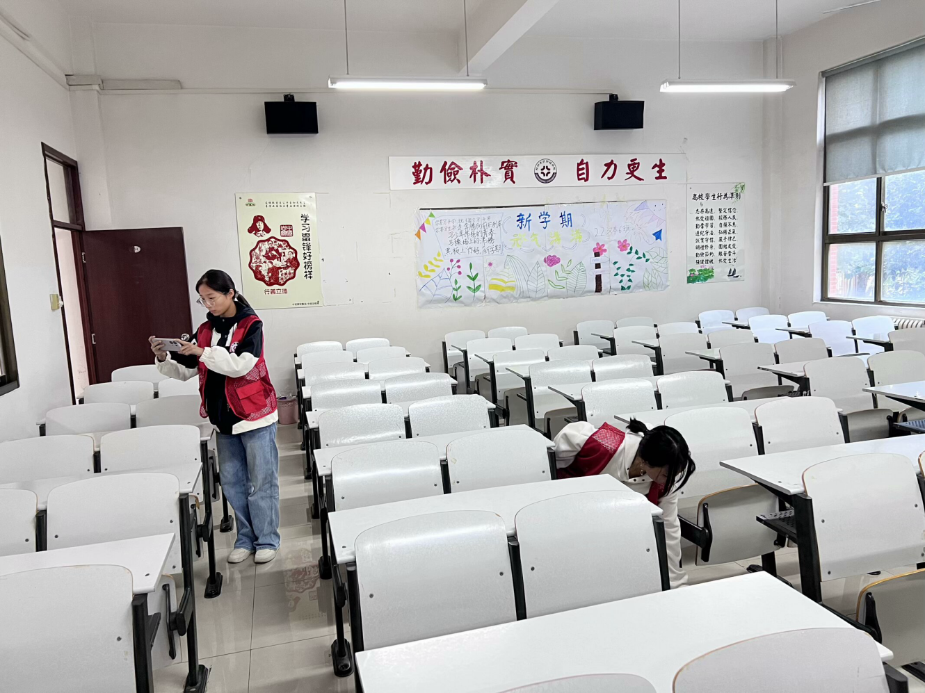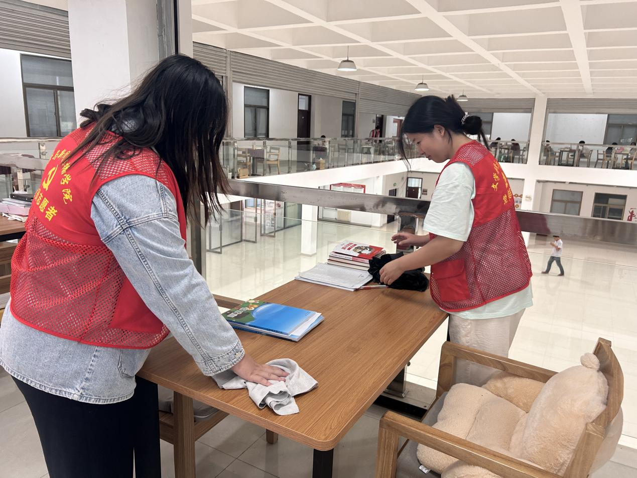 秋风爽,钟声扬,开学在即。为了给2024级新生营造干净、整洁的学习环境,同时增强同学们的环保意识和卫生意识,培养同学们良好的卫生习惯,展现学院风采。9月5日中午,我院组织开展教学楼专项清扫活动,我院学生第二党支部书记牛道恒老师、学生第四党支部书记乔玉洁老师和学生第二、第四党支部的学生党员代表参与此次活动。