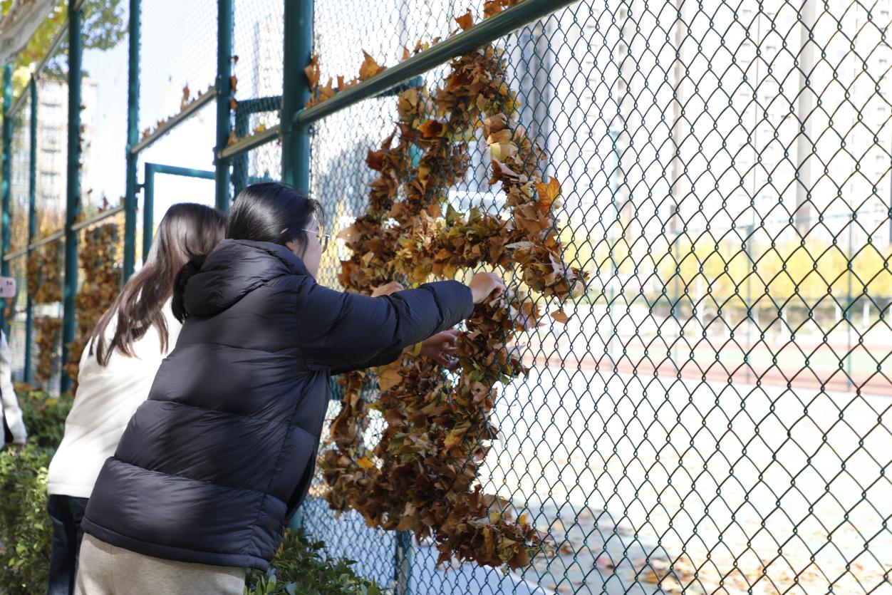 2.开展“以‘叶’织秋 绘梦郑商”落叶墙创意劳动