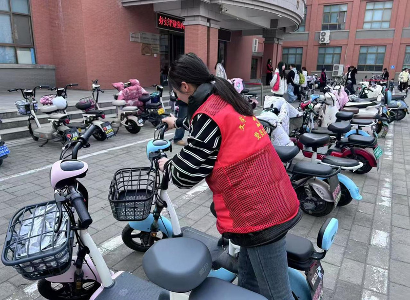 此外,支部成员积极引导骑车的同学将电动车停放到指定区域,对不规范停车行为进行及时劝导,并向同学们普及电动车停放安全知识。通过规范摆放电动车的实际行动,支部成员进一步增强了同学们的规范停车意识,改善了校园交通秩序,为营造安全文明的校园环境贡献力量。