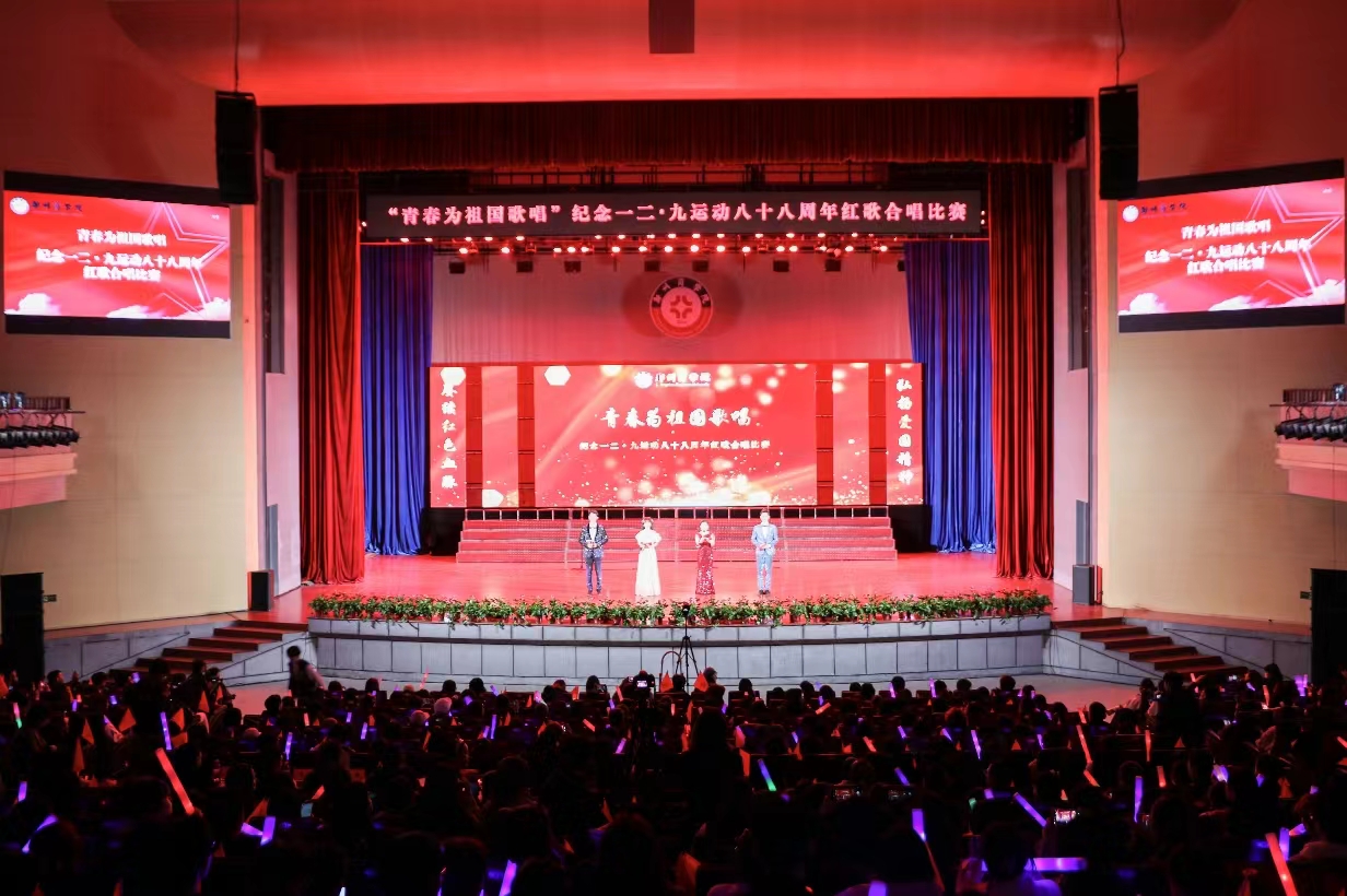 追溯红色经典,逐梦勇毅前行。12月7日,“青春为祖国歌唱”纪念一二·九运动八十八周年红歌合唱比赛在成功大会堂顺利举行。郑州大学副教授蒋涵,巩义市音乐家协会主席司永山、副主席范保党和王冰受邀担任评委。党委书记吴建军、校长助理刘升阳和相关部门主管、各学院党委书记及师生代表共2000余人观看此次比赛。