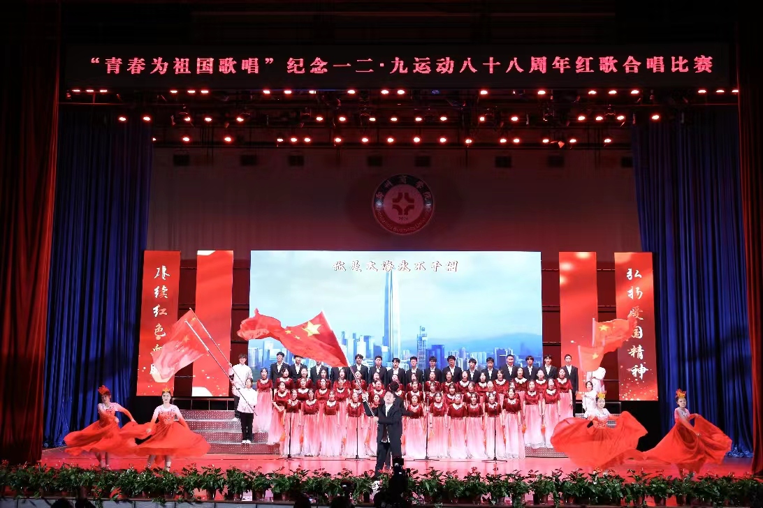 追溯红色经典,逐梦勇毅前行。12月7日,“青春为祖国歌唱”纪念一二·九运动八十八周年红歌合唱比赛在成功大会堂顺利举行。郑州大学副教授蒋涵,巩义市音乐家协会主席司永山、副主席范保党和王冰受邀担任评委。党委书记吴建军、校长助理刘升阳和相关部门主管、各学院党委书记及师生代表共2000余人观看此次比赛。